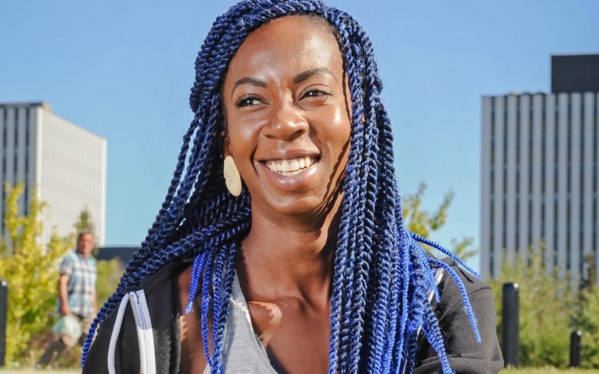 With makeup by Nicole Garbutt Makeup Artistry, model Inemesit Essien Graham wears a sweater and tank top by Erasmus Apparel, whale vertebrae cuff and earrings by Ugly Fish and sealskin heels by ENB Artisan.