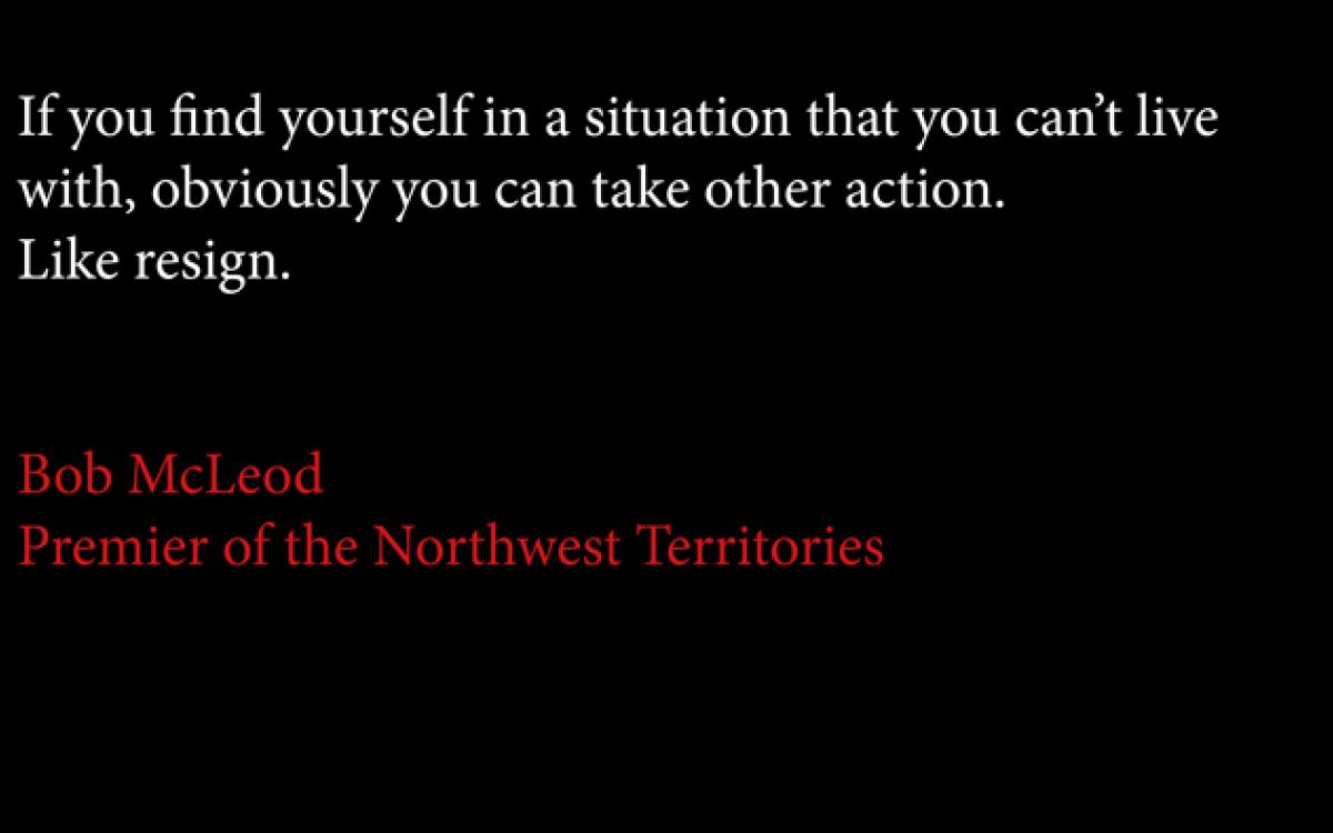This means they have to bite their tongues if they don’t agree with what the majority of cabinet decides in the backroom. “If you find yourself in a situation that you can’t live with,” says Premier Bob McLeod, “obviously you can take other action. Like resign.”