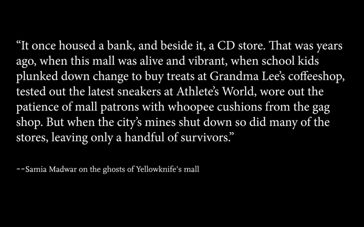 It once housed a bank, and beside it, a CD store. That was years ago, when this mall was alive and vibrant, when school kids plunked down change to buy treats at Grandma Lee’s coffeeshop, tested out the latest sneakers at Athlete’s World, wore out the patience of mall patrons with whoopee cushions from the gag shop. But when the city’s mines shut down so did many of the stores, leaving only a handful of survivors.