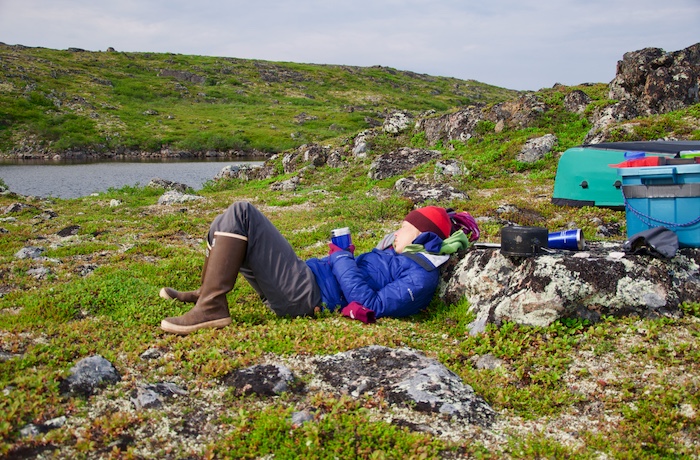 I have learned to adapt to the challenges of backcountry travel by giving myself extra days—time for lollygagging and dilly-dallying, for exploring and observing. There is no final destination we are racing toward, no monumental feat we are trying to achieve. Daily life is simplified. We wake. Enjoy breakfast. Savour coffee. Paddle. Hike. Portage. Mind the bears. Watch the wolverine. Search for bird nests. Gobble up berries. Nap. Cook dinner. Read a book. Sleep. Wake, and repeat.