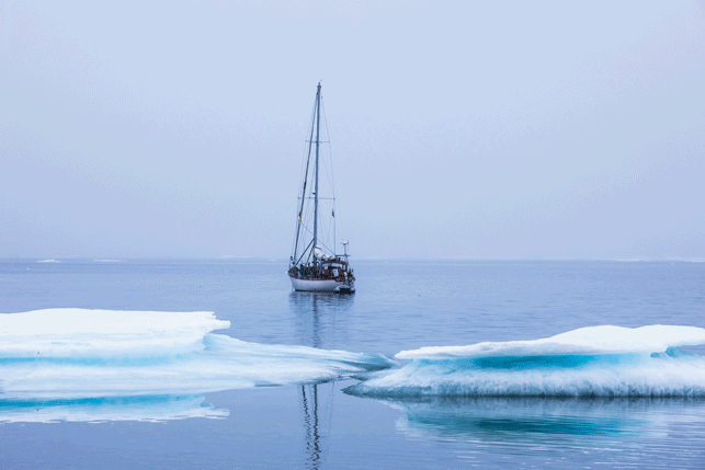 In June 2017, Dorthe and Jens Kjeldsen loaded two Danish filmmakers and their bags of camera gear onto the Kigdlua, the couple’s 12-metre-long fibreglass sloop. They were set to travel 90 kilometres east along Qeqertarsuup Tunua (Disko Bay) from Aasiaat, Greenland to Ilulissat, which sits at the mouth of a fjord of the same name. There would be no shortage of scenery for the filmmakers to shoot—the area was designated as a UNESCO World Heritage site because of the sheer number of icebergs that calve from the glaciers farther along the fjord.